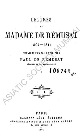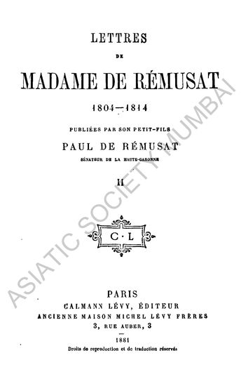 | Author | : | Remusat, Madame de |