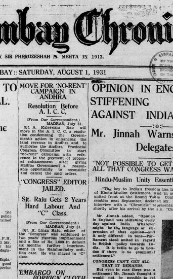 The Bombay Chronicle, 6 August 1931