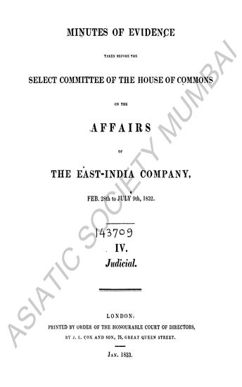 A View of the Evidence given before a Select Committee of the House of Commons on a Petition from the East India Company praying for Relief to India in reference to Unequal duties and other Grievances with Notes containing portions of the evidence given on the same subjects before a Select Committee of the House of Lord's
