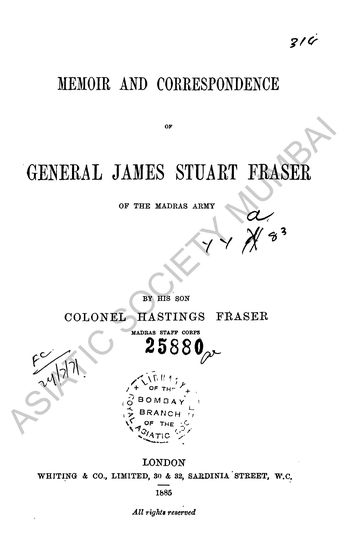 | Author | : | Fraser, James Stuart Gen. Fraser, Hastings Col. |