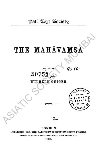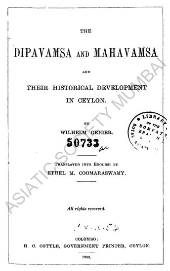 | Author | : | Mahavamsa Geiger, Wilhelm (Tr.) Haynes, Mabel |