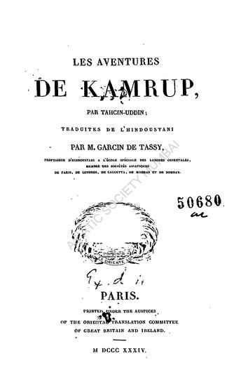 | Author | : | Tassy, M. Garcin de |