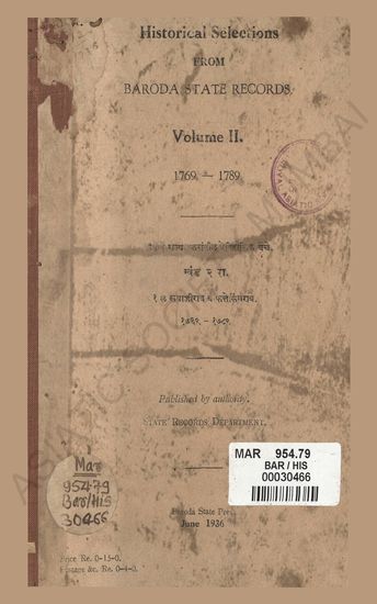 | Author | : | Veche, Shastri Daptranthil Baroda State Record Department (Ed.) |
