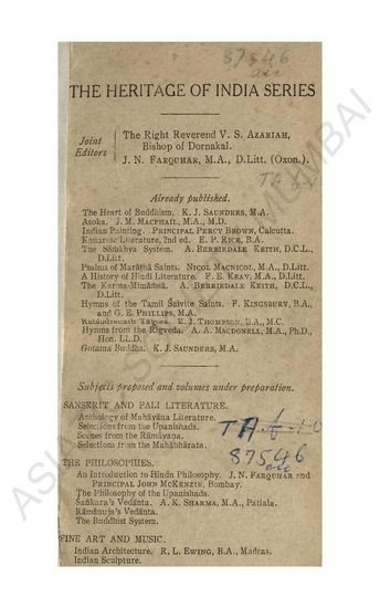 | Author | : | Moulton, James Hope Farquhar, J. N. (Ed.) Griswold, H. D. (Ed.) |