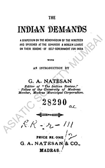 | Author | : | Natarajan, K. Natesan, G. A. The Indian Social Reformer (Ed.) |