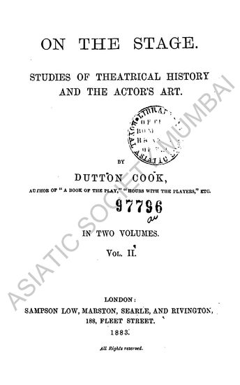 On the Stage: Studies of Theatrical History and the Actor's Art, in Two Volumes, Vol. I