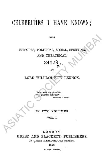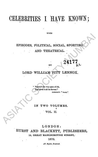 | Author | : | Lennox, William Pitt Lord |