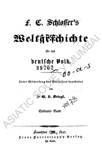 | Author | : | Schlosser, F. C. Kriegh, Georg Ludwig |