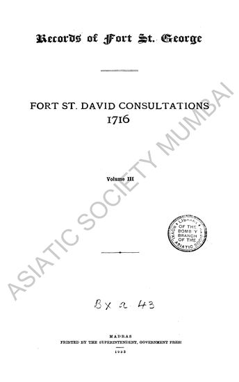 | Author | : | India. Madras. Fort St. George Records Macqueen, P. |