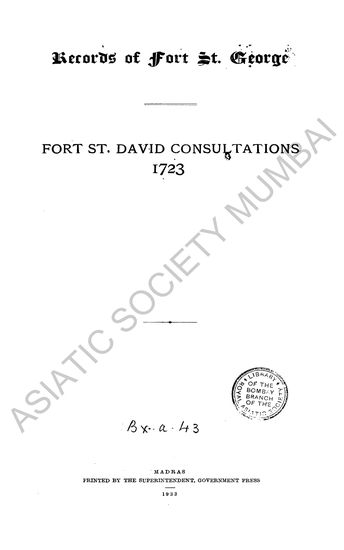 | Author | : | India. Madras. Fort St. George Records Macqueen, P. |