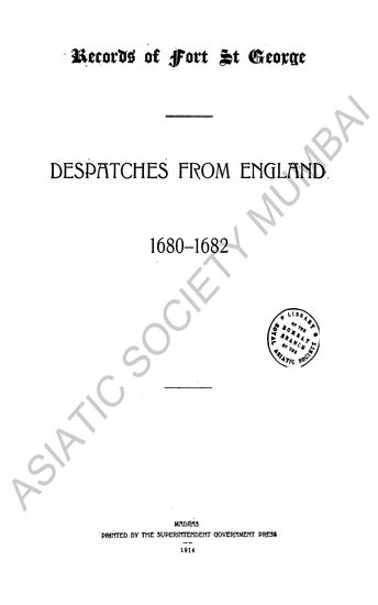 | Author | : | India. Madras. Fort St. George Records Dodwell, H. |