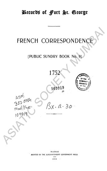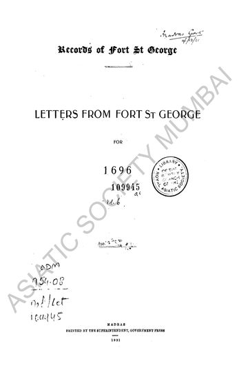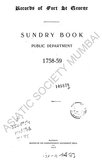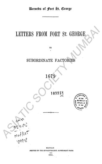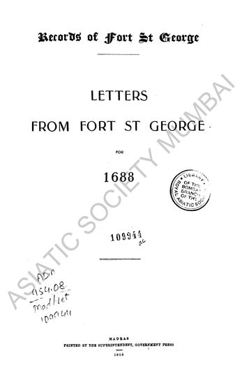 | Author | : | India. Madras. Fort St. George Records Dodwell, H. |