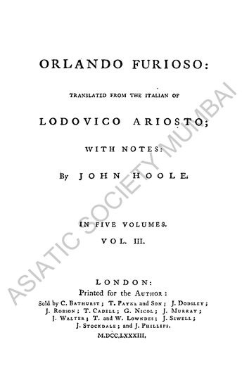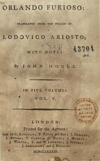 | Author | : | Ariosto, Lodovico Hoole, John |