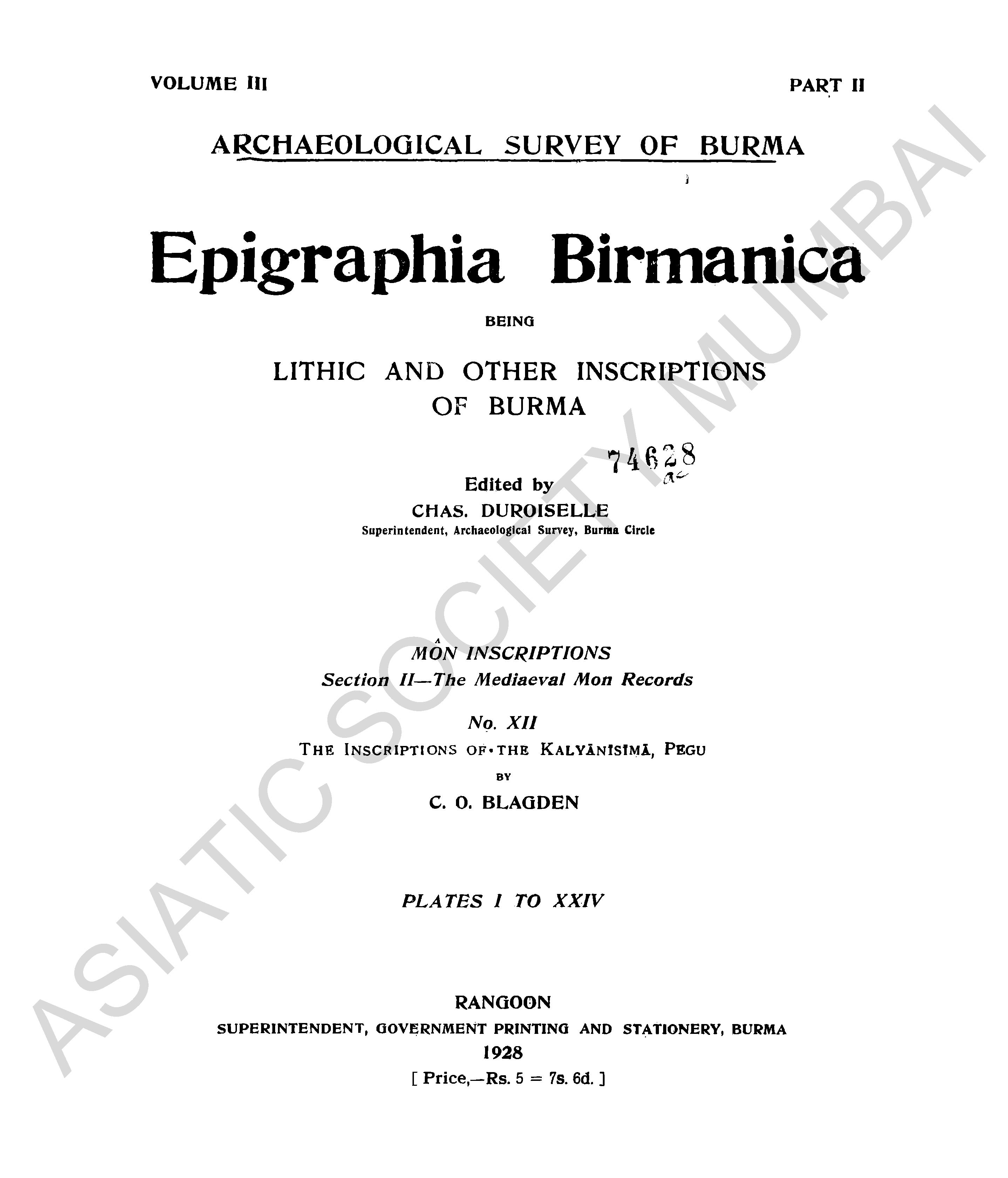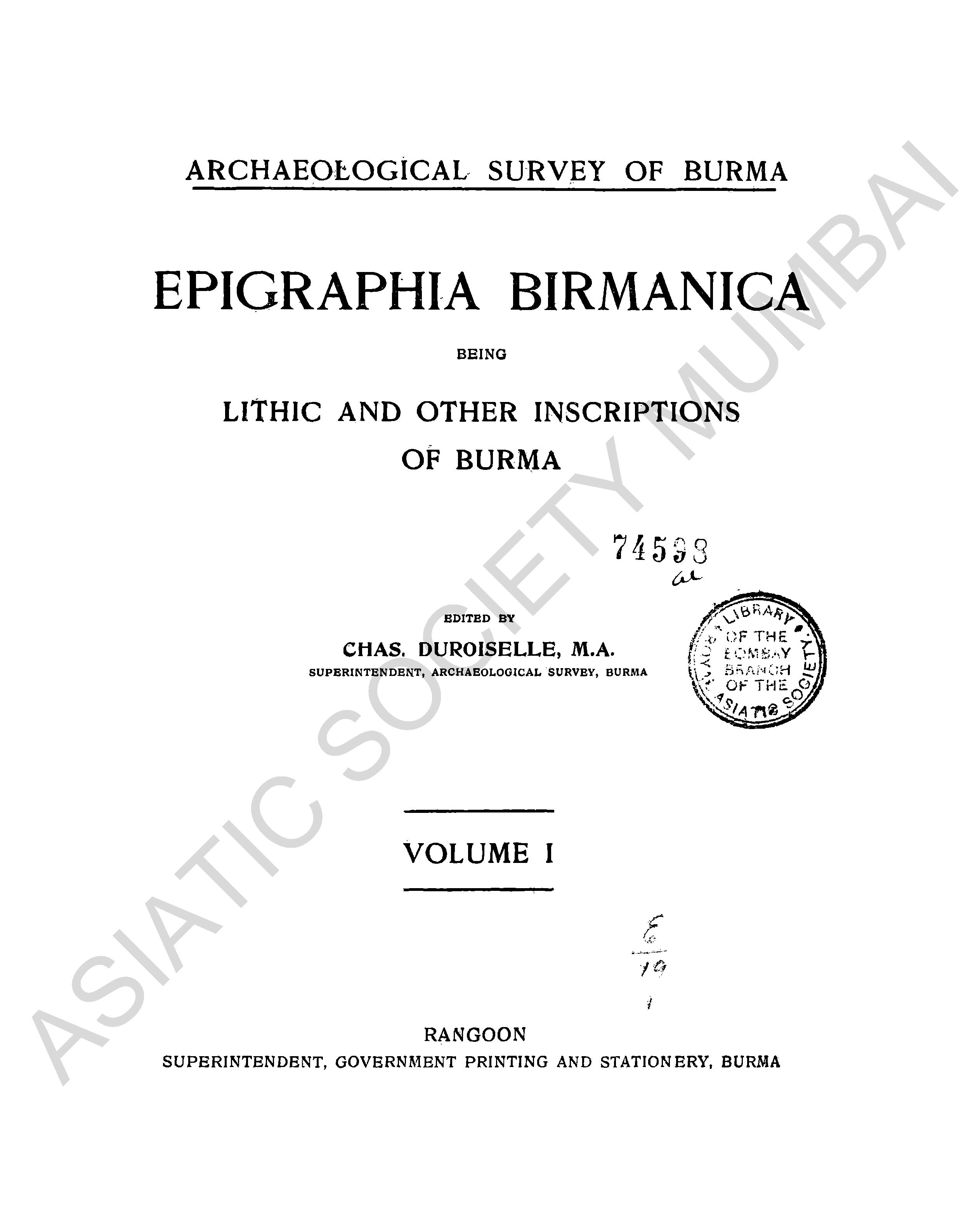 | Author | : | Duroiselle, Chas. (Ed.) |
