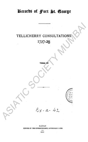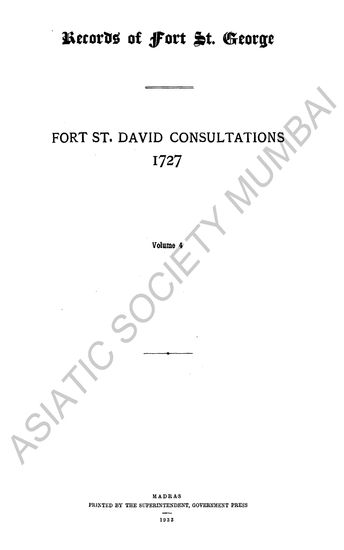 Records of Fort St. George; Diary and Consultation Book of 1727, Vol. LVII
