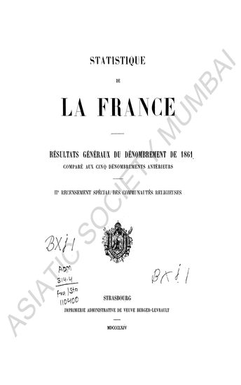 Statistique de la France. Deuxieme Serie, Vol. VIII- Mouvement de la Population pendant les annees 1861, 1862, 1863, 1864 et 1865
