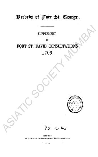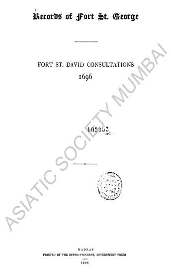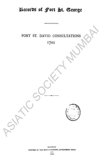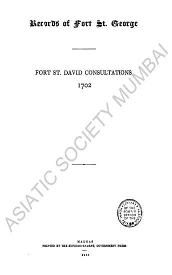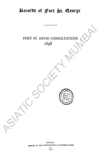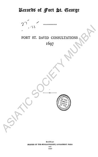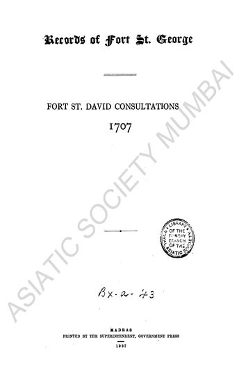 | Author | : | India. Madras. Fort St. George Records Baliga, B. S. |