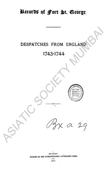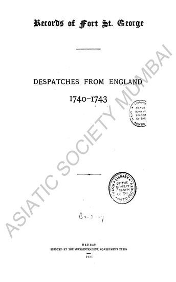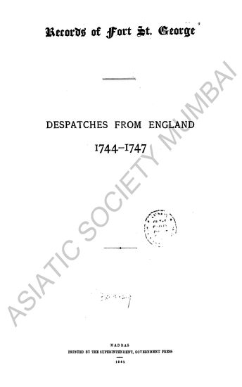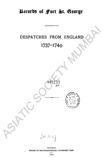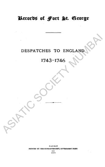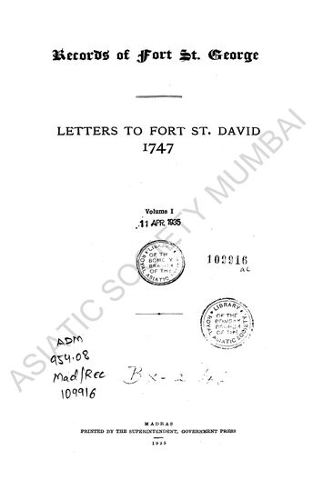 | Author | : | India. Madras. Fort St. George Records MacQueen, P. |