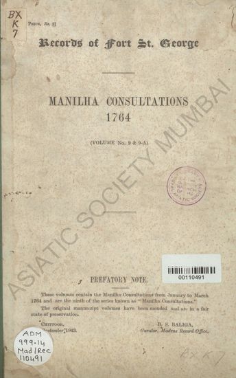 | Author | : | India. Madras. Madras Presidency. Fort St. George Records Baliga, B. S. |