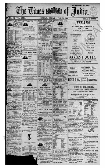 The Times Of India, 30 April 1909