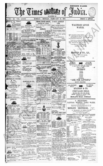 The Times Of India, 21 February 1910