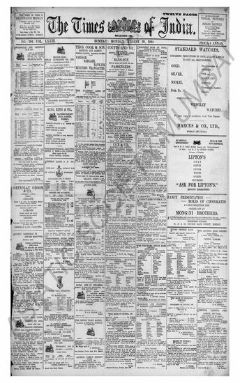 The Times Of India, 29 August 1910