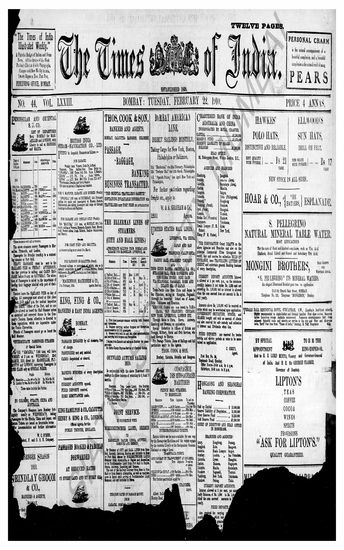 The Times Of India, 22 February 1910