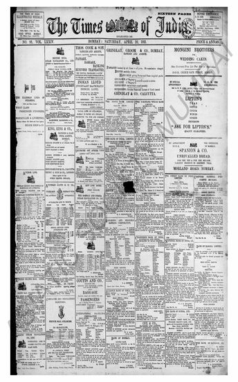The Times Of India, 22 April 1911