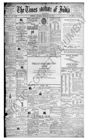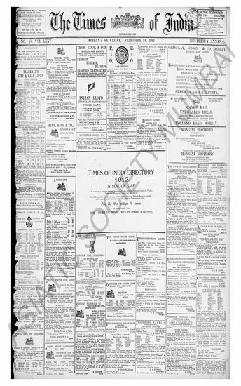 The Times Of India, 20 February 1912