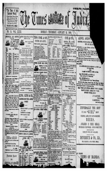 The Times Of India, 14 January 1909
