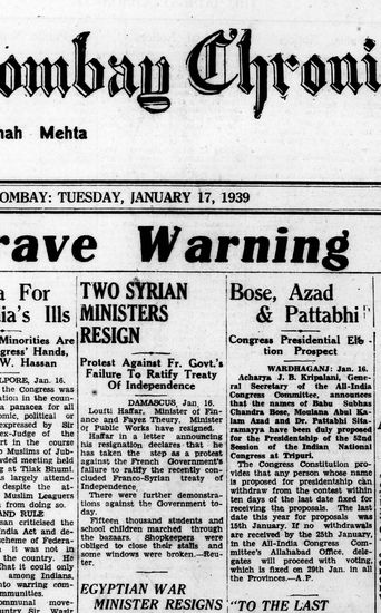 The Bombay Chronicle, 17 January 1939