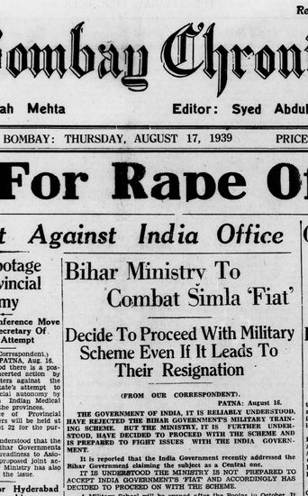 The Bombay Chronicle, 17 August 1939