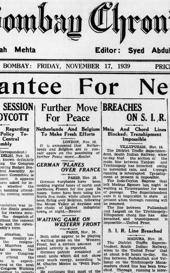 The Bombay Chronicle, 17 November 1939