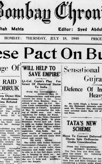 The Bombay Chronicle (Sunday / Weekly Edition), 18 Augu ...