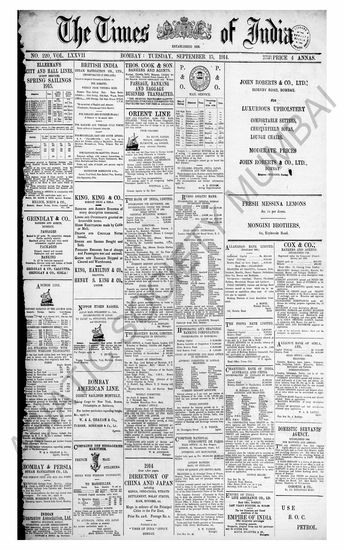 The Times Of India, 15 September 1914