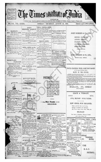 The Times Of India, 15 August 1918