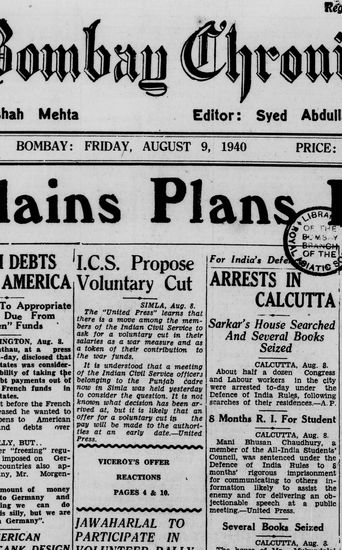 The Bombay Chronicle (Sunday / Weekly Edition), 11 Augu ...