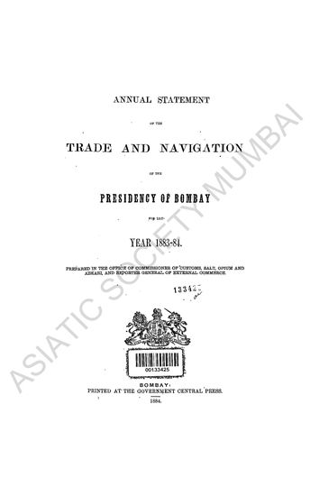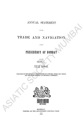 Annual Statement of the Trade and Navigation of the Presidency of Bombay, for the year 1880-81; prepared in the Office of Commissioner of Customs, Opium and Abkari, and Reporter General of External Commerce
