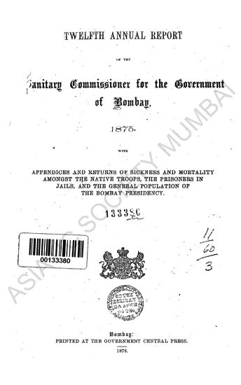 Twelfth Annual Report of the Sanitary Commissioner for the Government of Bombay, 1875; with Appendices and Returns of Sickness and Mortality amongst the Native Troops, the Prisoners in Jails and the General Population of the Bombay Presidency
