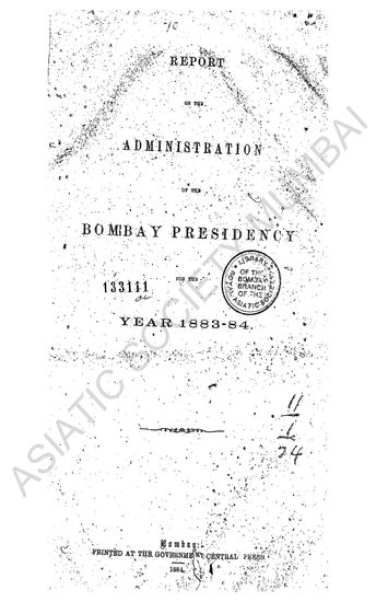 Report on the Administration of the Bombay Presidency for the year 1883-84