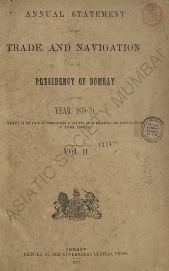 Annual Statement of the Trade and Navigation of the Presidency of Bombay, for the year 1878-79; prepared in the Office of Commissioner of Customs, Opium and Abkari, and Reporter General of External Commerce, Vol. II