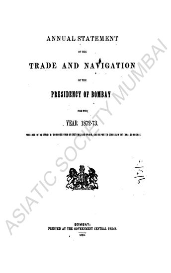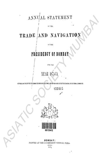Annual Statement of the Trade and Navigation of the Presidency of Bombay, for the year 1872-73; prepared in the Office of Commissioner of Customs, Opium and Reporter General of External Commerce