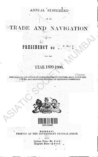 Annual Statement of the Trade and Navigation of the Presidency of Bombay, for the year 1899-1900; prepared in the Office of Commissioner of Customs, Salt, Opium and Abkari, and Reporter General of External Commerce