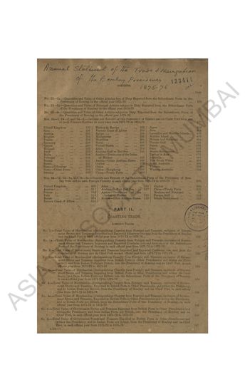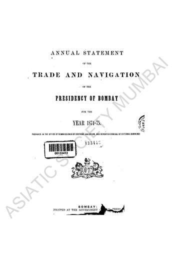Annual Statement of the Trade and Navigation of the Presidency of Bombay, for the year 1874-75; prepared in the Office of Commissioner of Customs, Opium and Reporter General of External Commerce