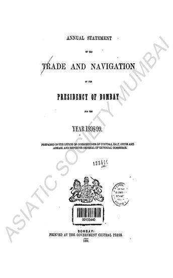 Annual Statement of the Trade and Navigation of the Presidency of Bombay, for the year 1897-98; prepared in the Office of Commissioner of Customs, Salt, Opium and Abkari, and Reporter General of External Commerce
