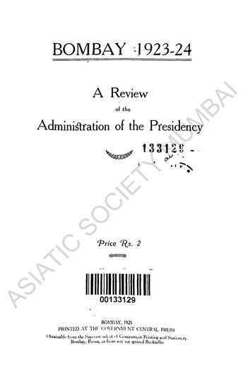Bombay 1923-24: A Review of the Administration of the Presidency