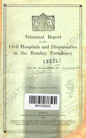 Triennial Report on the Civil Hospitals and Dispensaries in the Bombay Presidency, for the years 1929-1931
