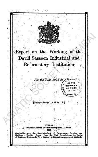 Report on the Working of the David Sassoon Industrial and Reformatory Institution for the year 1924-25