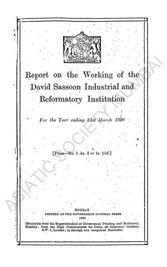 Report on the Working of the David Sassoon Industrial and Reformatory Institution for the year ending 31st March 1926
