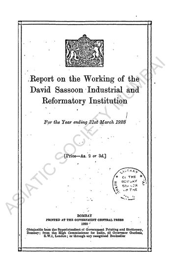 Report on the Working of the David Sassoon Industrial and Reformatory Institution for the year ending 31st March 1928